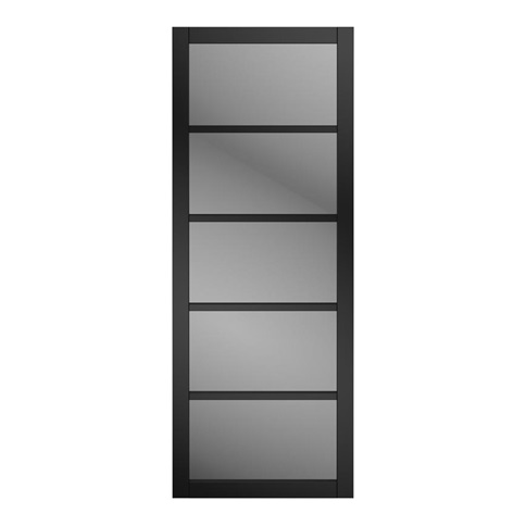 The five-panel detail of this door introduces a timeless look that will complement a variety of interiors. Updated with a contemporary, black shade and a glazed panel, it offers a statement look, that is right on trend in any home. It also has a premium, hardwood core and a solid, stile-and-rail construction for maximum durability. A wide choice of sizes is available to suit any space, including small widths that can be paired together to form a double entryway.