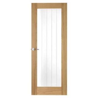 Introduce natural light into a room with this Genoa Oak glazed door, featuring a natural wood finish and glass pane.